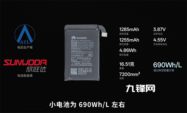 在這款豎折疊手機中,華為Pura X提供了十分靠譜的續(xù)航能力,通過兩塊高硅電池,提供了等效4720mAh的大電池,小電池是690Wh/L,在電池是797Wh/L,這個電量在豎折疊手機中,已經(jīng)屬于較高水準。
