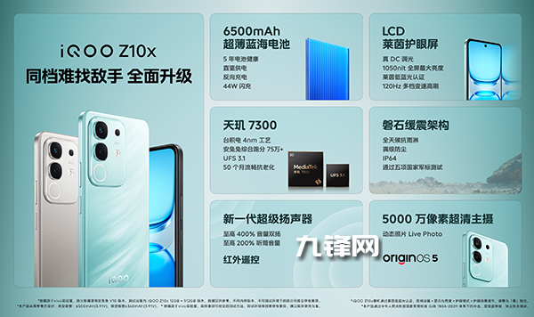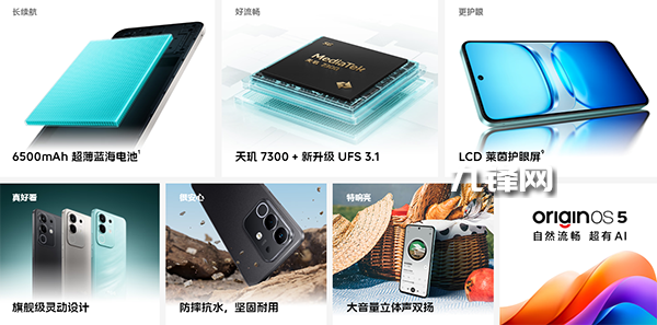 其它:有紅外、無(wú)NFC,X軸線性馬達(dá),雙揚(yáng)聲器,USB2.0,Wi-Fi6,藍(lán)牙5.4,防護(hù)等級(jí)IP64,軍標(biāo)抗沖擊+磐石緩震架構(gòu),側(cè)邊指紋,單頻GPS(L1)和單頻北斗(B1I),預(yù)裝基于Android 15開(kāi)發(fā)的OriginOS 5操作系統(tǒng)。