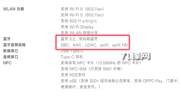 藍(lán)牙方面,該機(jī)配置的是藍(lán)牙5.2,低功耗藍(lán)牙,在藍(lán)牙音頻規(guī)格上支持SBC,AAC,LDAC,aptX,aptX HD。