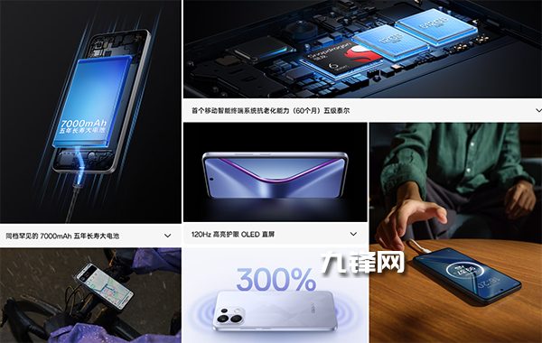 機身內(nèi)置7000毫安時大電池,支持80W有線充電,內(nèi)置自研智慧充電引擎5.0,能夠?qū)㈦姵氐膲勖嵘?年時間,真正做到了持久依舊給力。