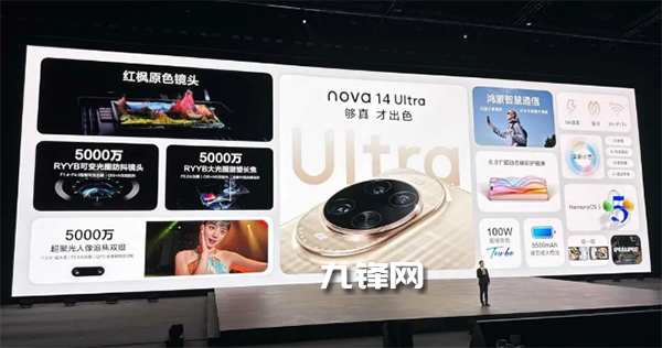 此次nova14 Ultra的影像尤為亮眼,搭載了全新的華為紅楓原色攝像頭,主攝采用50MP RYYB F1.4-F4.0十檔物理可變光圈。