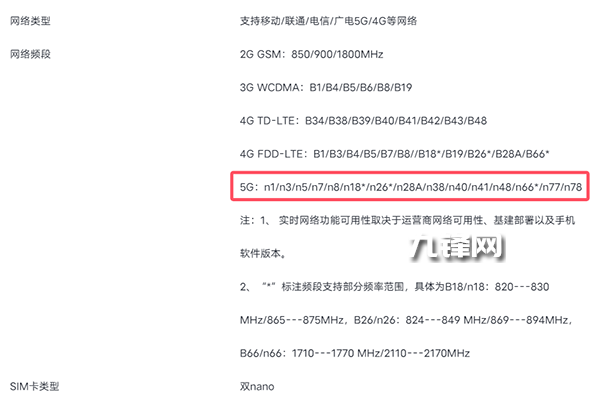 網(wǎng)絡方面,該機是支持5G的,并且包含了這些5G頻段n1/n3/n5/n7/n8/n18*/n26*/n28A/n38/n40/n41/n48/n66*/n77/n78。