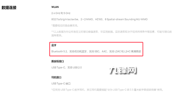 藍牙5.2,支持低功耗藍牙,規(guī)格上支持SBC、AAC,支持LDAC和L2HC高清音頻。
