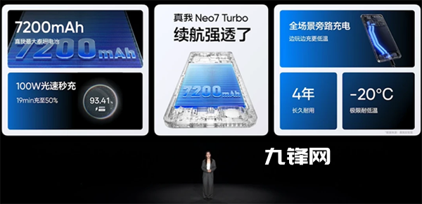 realme真我Neo7 Turbo內(nèi)置7200mAh超大容量電池,創(chuàng)下同價(jià)位機(jī)型新紀(jì)錄。支持100W有線超級(jí)閃充技術(shù),35分鐘即可充滿。
