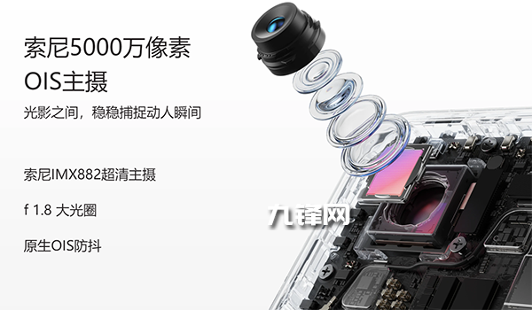 主攝攝像頭:5000萬像素,索尼LYT600傳感器(即索尼IMX882),1/1.95英寸,0.8μm,F(xiàn)1.88光圈,等效焦距26mm,OIS光學(xué)防抖,支持自動(dòng)對焦(AF),5P