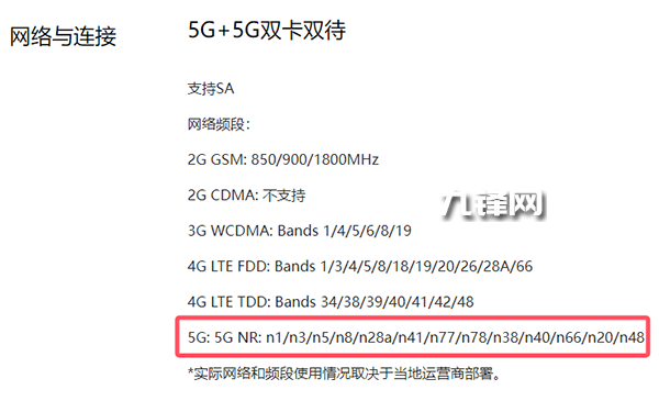 網(wǎng)絡(luò)方面,該機(jī)是支持5G的,并且包含了這些5G頻段: n1/n3/n5/n8/n28a/n41/n77/n78/n38/n40/n66/n20/n48。