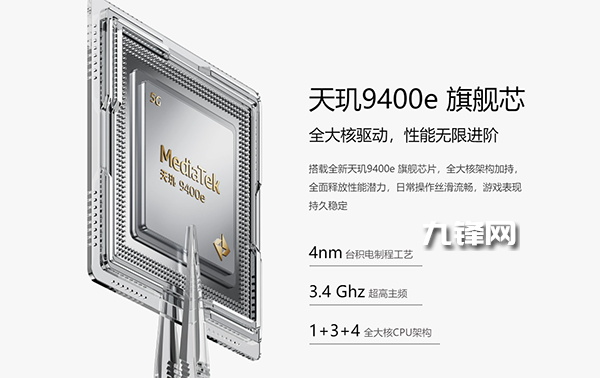 性能上搭載了聯(lián)發(fā)科次旗艦處理器天璣9400e,采用的是臺積電4nm制程工藝,與天璣9400同樣的全大核設(shè)計(jì),同樣的12核超大規(guī)模GPU,同樣的超大規(guī)模緩存,四顆最高3.4GHz的Cortex-X4超大核+四顆最高2.0GHz的Cortex-A720大核,搭配12核Immortalis-G720 GPU,擁有8MB L3緩存與10MC SLC緩存,滿足你對性能釋放的一切想象。