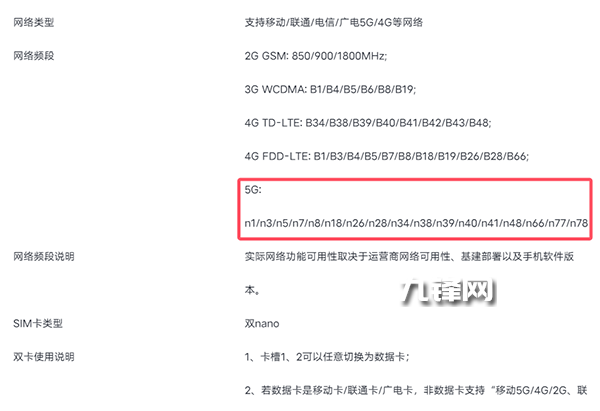 5G頻段:n1/n3/n5/n7/n8/n18/n26/n28/n34/n38/n39/n40/n41/n48/n66/n77/n78。