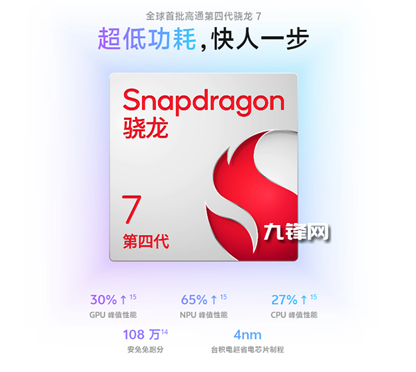 在性能配置上,該機采用驍龍7Gen4的處理芯片,這也是高通的一顆全新芯片,定位中端機市場。