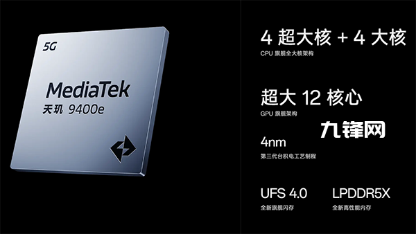作為聯(lián)發(fā)科最新推出的移動(dòng)平臺(tái),天璣9400e采用臺(tái)積電4nm制程工藝,其CPU架構(gòu)由1顆3.4GHz X4超大核、3顆2.85GHz X4大核及4顆2.0GHz A720能效核心組成,搭配Immortalis-G720 MC12圖形處理器與NPU 790 AI引擎,為移動(dòng)端性能樹立新標(biāo)桿。