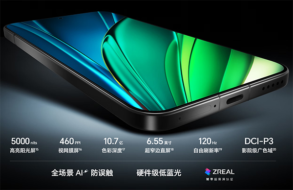 榮耀400系列兩款機(jī)型都采用了6.55英寸OLED直屏,屏幕分辨率為2736×1264(屬于是1.5K級(jí)別),支持120Hz LTPO自適應(yīng)刷新率,3840Hz的超高頻PWM調(diào)光以及類DC調(diào)光功能,也通過了萊茵無頻閃認(rèn)證,畫質(zhì)表現(xiàn)都符合這個(gè)價(jià)位該有的水平。局部峰值亮度突破5000nit,在強(qiáng)光下仍可清晰顯示內(nèi)容。