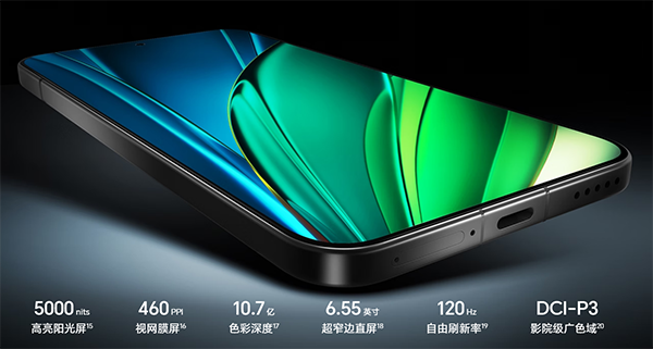 榮耀400都采用了6.55英寸OLED直屏,屏幕分辨率為2736×1264,支持120Hz高刷新率,3840Hz的超高頻PWM調(diào)光以及類DC調(diào)光功能,也通過了萊茵無頻閃認(rèn)證,畫質(zhì)表現(xiàn)都符合這個(gè)價(jià)位該有的水平,局部峰值亮度突破5000nit,在強(qiáng)光下仍可清晰顯示內(nèi)容。