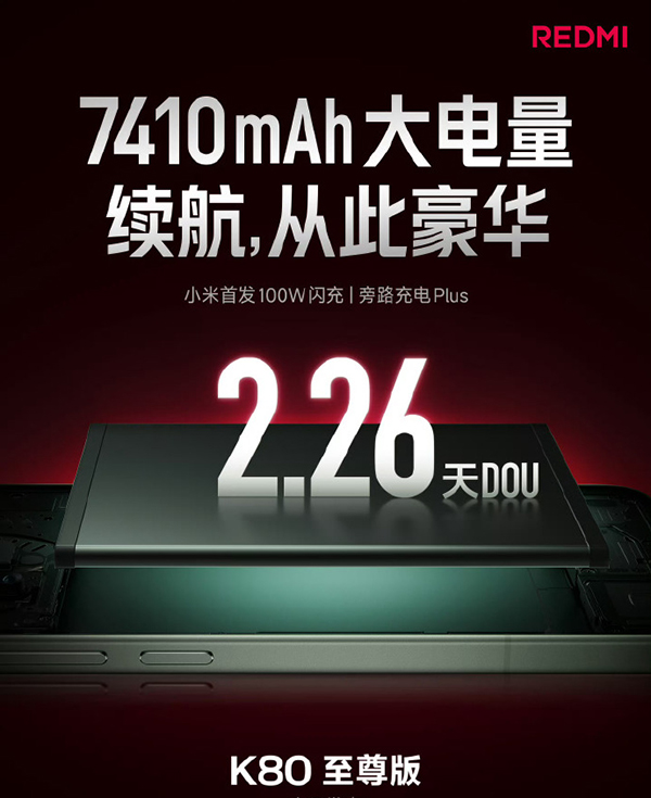 K80至尊版作為K系列的超大杯,內(nèi)置了一塊K系列最大的7410mAh小米金沙江大電池,并且兼容了100W高功率澎湃秒充。