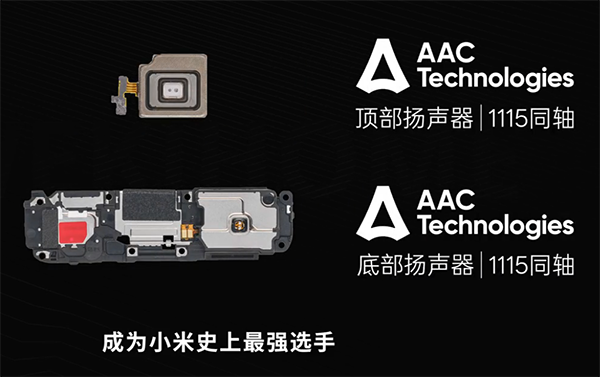 這兩枚揚聲器均為1115規(guī)格,并采用了來自AAC瑞聲科技的同軸共磁路設(shè)計,通過將高低音單元采用共用設(shè)計整合的方法,大幅減小揚聲器對空間的占用,并帶來優(yōu)秀的音質(zhì)表現(xiàn)。