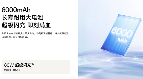 雖然是定位輕薄手機,但是OPPO Reno14的充電續(xù)航體驗也非常出色,采用6000mAh大電池+80W快充的組合。