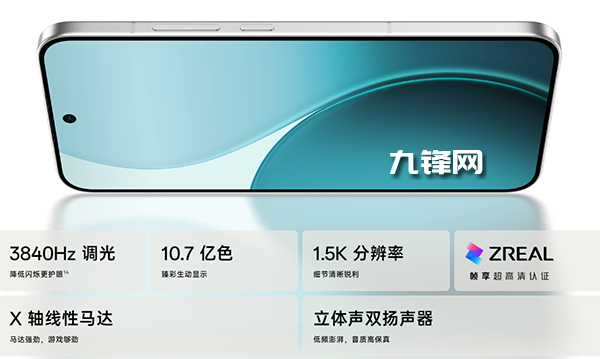 正面搭載了一塊分辨率為1.5K的高清護眼屏,屏幕尺寸為6.59英寸,擁有60/90/120Hz的三擋刷新率,顯示效果細膩,同時3840Hz的PWM高頻護眼調光,能夠有效保護我們的視力健康。