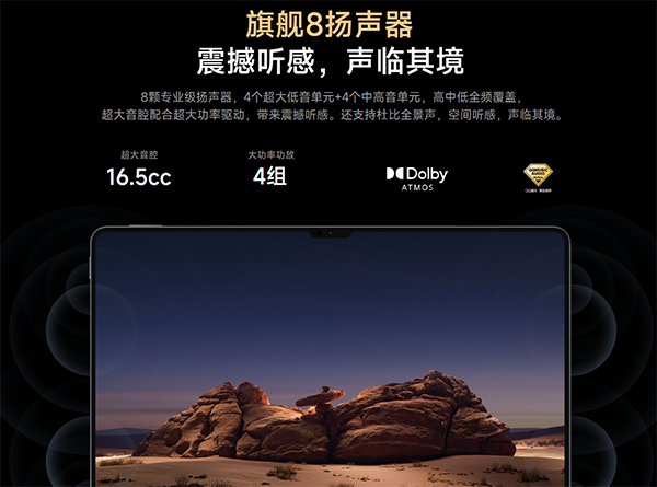 在這個音頻方面,小米Pad 7 Ultra配備旗艦8揚聲器,擁有4個超大低音單元+4個中高音單元,擁有16.5cc大音腔,4組大功率功放,支持杜比全景聲、QQ音樂·臻品音質(zhì)認證,帶來更為震撼的外放聲音體驗。平板支持藍牙5.4,無線音頻傳輸也有更高效率。