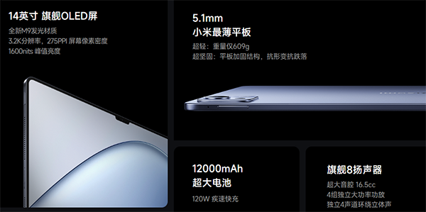 小米平板7 Ultra的機身更是充滿了驚喜,盡管是14英寸屏幕的機身,但它的重量卻只有609g,厚度則是做到了5.1mm,裸機的手感令人驚艷。