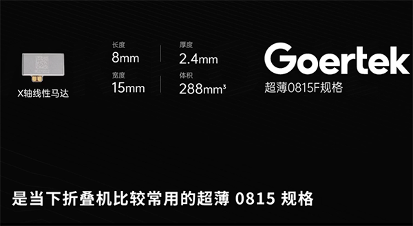 在馬達(dá)方面,這個vivo X Fold5配置的是歌爾0815F超薄版X軸線性馬達(dá)。
