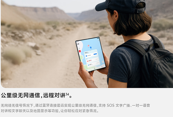 支持,vivo X Fold5支持無網(wǎng)通信,并且支持1.2公里范圍內(nèi)SOS應(yīng)急對講。