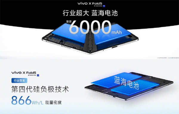 單電芯,vivo X Fold5配置了6000mAh藍(lán)海電池,并且是單電芯單接口設(shè)計(jì)方案,有著行業(yè)領(lǐng)先的半固態(tài)電池技術(shù)以及-30℃超低溫供電能力,重新定義了折疊屏續(xù)航標(biāo)準(zhǔn)。