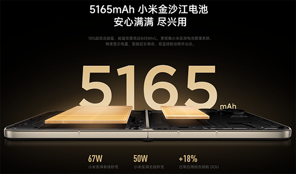今年電池容量得到大幅度提升,這次的小米Flip2應(yīng)用了全新一代的金沙江電池,實現(xiàn)了5165mAh的超大電池容量,讓小折疊手機的電池容量首次突破5000mAh大關(guān),并且在同樣的測試條件下,小米Flip 2的DOU續(xù)航時間為1.34天,對比iPhone 16 Pro的0.89天,提升非常巨大。