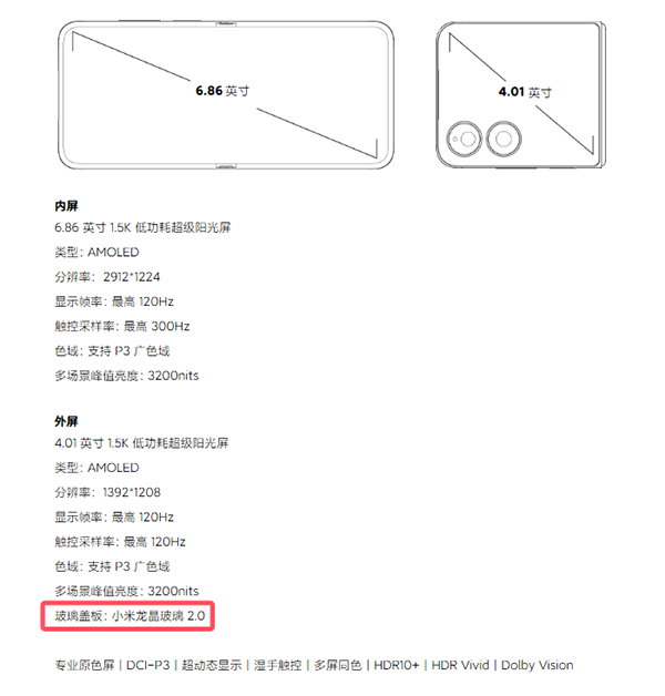 也就是說,小米MIX Flip2的外屏是龍晶玻璃2.0,而內(nèi)屏則不是。