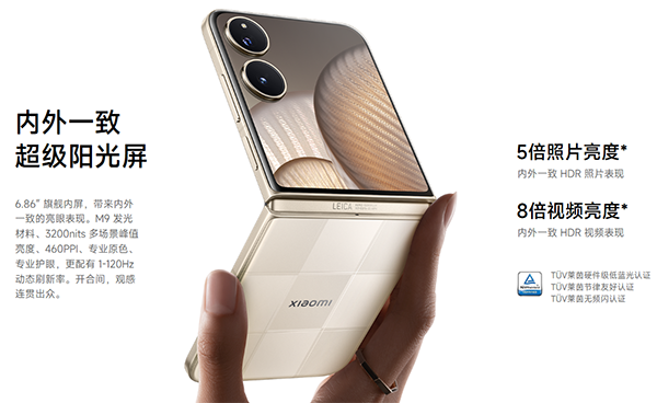 也就是說,小米MIX Flip2內屏是LTPO屏(支持1-120Hz動態(tài)刷新率),而外屏則是LTPS屏。