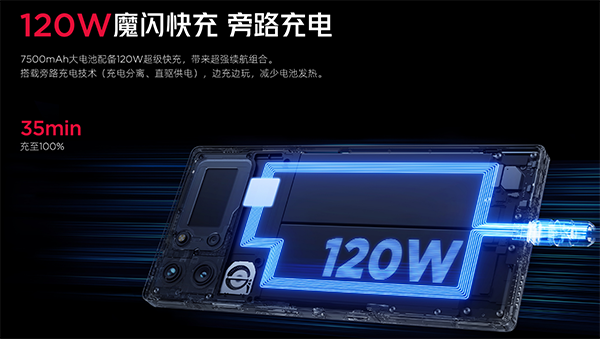 這次的紅魔10S Pro系列在紅魔10 Pro系列的基礎(chǔ)上,帶來了紅魔史上最強(qiáng)續(xù)航組合:7500mAh第二代牛魔王大電池+120W超級(jí)快充,超大·超能扛。