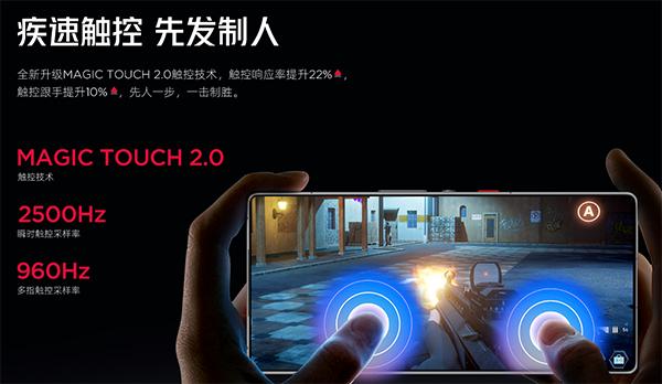 此外,雙獨立IC觸控肩鍵,520Hz的超高觸控采樣率,搭配2500Hz屏幕瞬時觸控采樣率(960Hz全局觸控采樣率)與MagicTouch 2.0技術(shù)帶來了毫秒級的觸控響應(yīng)時間。