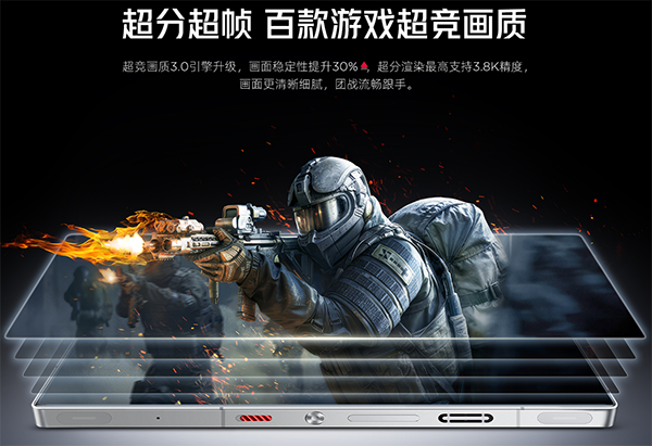 超競畫質3.0技術更支持《QQ飛車》《英雄聯(lián)盟》等超200款手游,畫面穩(wěn)定性提升30%,2K+120Hz超分超幀齊頭并進,將移動端畫質推至3.8K渲染精度。