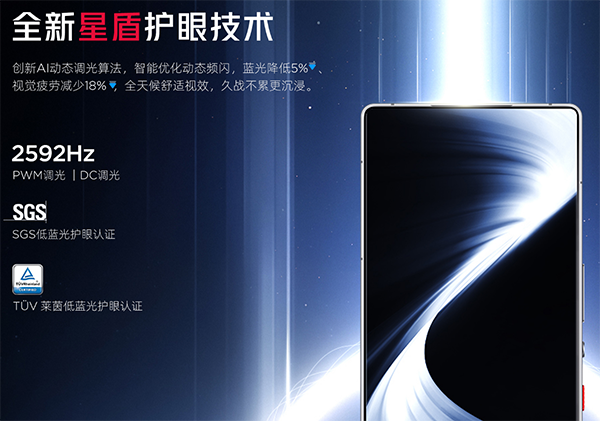 屏幕:尺寸是6.85英寸,第7代屏下前攝的真·全面屏,“悟空屏”(無(wú)孔的諧音梗),144高刷新率(支持30/60/90/120/144Hz五檔動(dòng)態(tài)調(diào)節(jié)),分辨率是2688x1216(屬于是1.5K級(jí)別),ppi 430,屏幕供應(yīng)商是京東方,Q9+基材OLED屏,2592Hz高頻PWM調(diào)光+中高亮度類DC調(diào)光,1.25mm屏幕黑邊+0.7mm邊框厚度,全白峰值亮度1000尼特,局部峰值2000尼特,960Hz全局觸控采樣率(瞬時(shí)2500Hz);