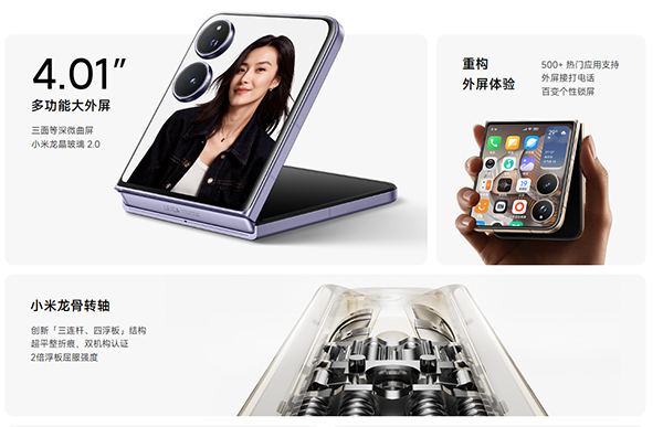 另外,MIX Flip2的4.01英寸外屏采用了M9發(fā)光材料,亮度最高可達(dá)3200nits,哪怕是在烈日下,屏幕依舊清晰可見(jiàn)。