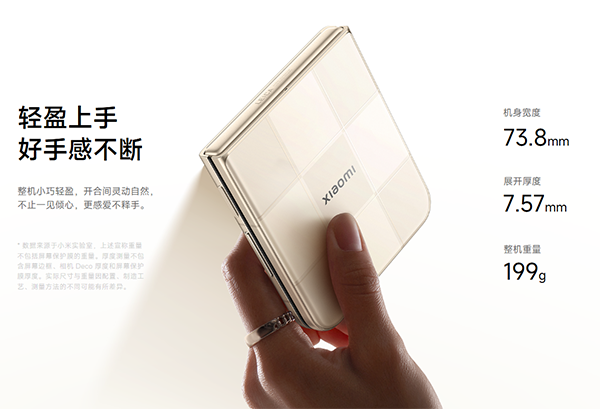 特別是在展開狀態(tài)下,手機(jī)薄至7.57mm,輕僅199g,相比同尺寸的直板旗艦手機(jī),具有更加輕薄的優(yōu)勢(shì),拿在手中十分趁手。