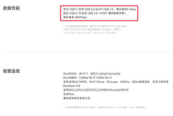 長邊支持USB3.2 Gen1/USB2.0,理論最高5Gbps,短邊USB-C只支持USB2.0(HOST模式數(shù)據(jù)傳輸),理論最高480Mbps。