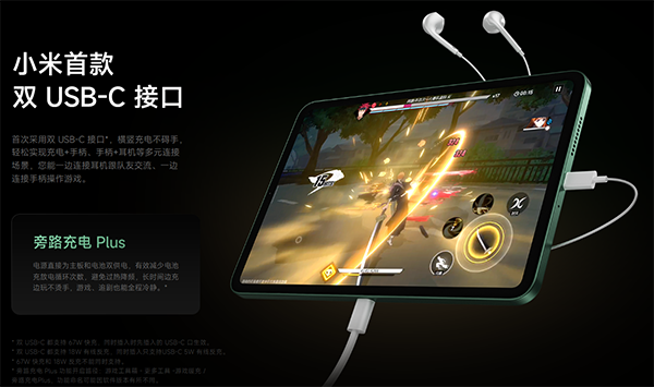 支持,紅米Redmi K Pad在機身側(cè)邊單獨配備了一枚USB充電接口,支持旁路充電Plus,相較于傳統(tǒng)旁路充電直接繞過電池、為主板供電,旁路充電Plus可以在保持相同熱體驗的同時,同時為主板和電池充電。