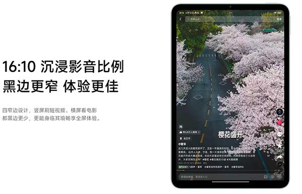屏幕上采用的是一塊3008*1880的LCD屏, 403PPI的LCD屏在肉眼上看不到任何顆粒感,再加上小平板里不錯(cuò)的邊框控制,觀感很好。