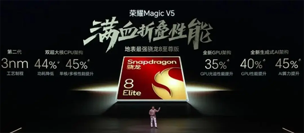 性能上,搭載了一顆滿血版的驍龍8至尊版處理器,是榮耀Magic V5對(duì)比競(jìng)品的一大優(yōu)勢(shì),眾所周知,驍龍8至尊采用了高通自研CPU架構(gòu),在性能方面相較于第三代驍龍8可以說(shuō)是有了非常大的提升。