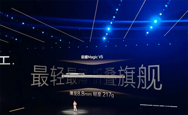 從整體的設(shè)計上來看,這個榮耀Magic V5不但極致的薄,而且也極致的輕,并且整機重量為217g,相比目前的很多主流大屏直板手機和大折疊手機都要輕。