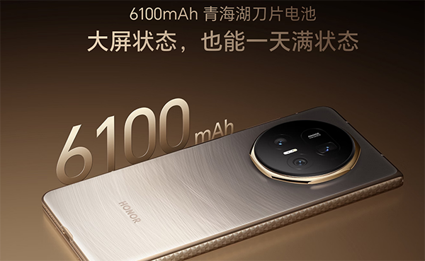 機身厚度和電池容量一個兩難的問題,也在榮耀Magic V5上得到完美解決,榮耀Magic V5(1TB版本)搭載6100mAh高密度青海湖刀片電池,首次實現(xiàn)折疊屏電池容量突破6100mAh。