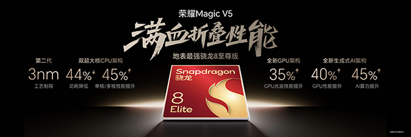 這次的榮耀Magic V5的機(jī)身輕薄到極致,8.8mm的機(jī)身厚度是目前所有折疊屏手機(jī)都難以超越的存在,它還最高搭載6100mAh大電池,搭載滿血版驍龍8至尊版,搭載全焦段實(shí)用三攝配置,這讓它在續(xù)航、性能以及相機(jī)上對比競品有更多優(yōu)勢。