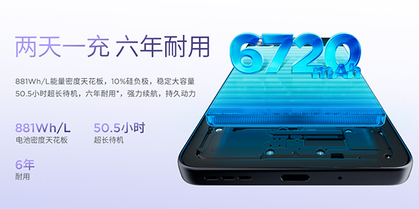 另外,核心搭載天璣7300芯片,內(nèi)置6720mAh電池,支持30W有線快充,不支持無(wú)線充電,-20℃可支持33.7小時(shí)5G通話,高溫60℃能夠流暢運(yùn)行。