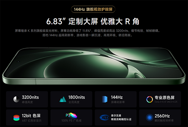 是,紅米K80至尊版采用了一塊6.83英寸的OLED屏幕,屏幕至高支持144Hz刷新率,表面覆蓋小米龍晶玻璃材質,比主流康寧GG5玻璃硬度提升35%,耐摔性能增長十倍。