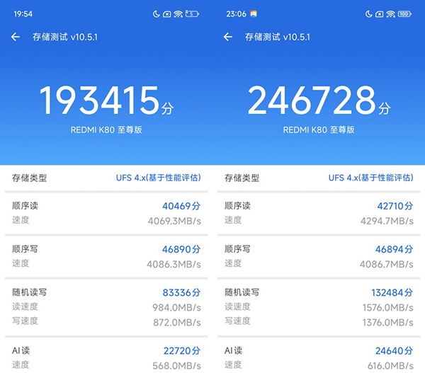 并且全系標配LPDDR5X內存和UFS4.1閃存,并且它的閃存性能在低電量和高電量狀態(tài)下持續(xù)讀寫差異不大、但隨機讀寫有很顯著的差異。這可能是因為采用了內存作為閃存的緩沖區(qū),而低電狀態(tài)下內存頻率有所降低所導致。