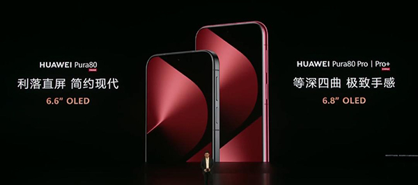 在屏幕上,這一次的華為Pura80標(biāo)準(zhǔn)版搭載6.6英寸OLED直屏,Pro和Pro+以及Ultra版搭載6.8英寸OLED等深四曲屏。