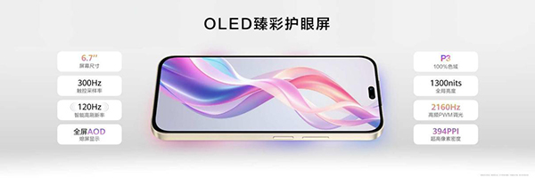 麥芒40搭載了一塊6.7英寸的OLED藥丸挖孔直屏,支持120Hz刷新率,雖然分辨率僅為1080P,但卻配備了極為領(lǐng)先的全屏AOD息屏顯示功能,并且是1300nit全局亮度。