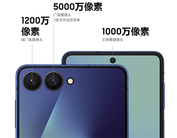三星Galaxy Z Flip7的后置雙攝像頭由5000萬像素廣角攝像頭和1200萬像素超廣角攝像頭組成,能在不同光線條件下,展現(xiàn)旗艦級的清晰成像能力,無論是拍攝風(fēng)景大片,還是直接通過外屏定格高品質(zhì)自拍,都易如反掌。