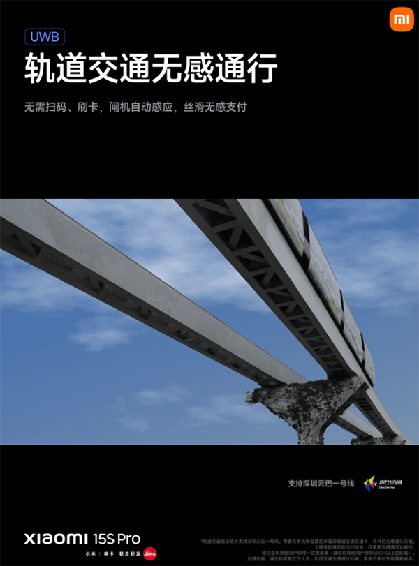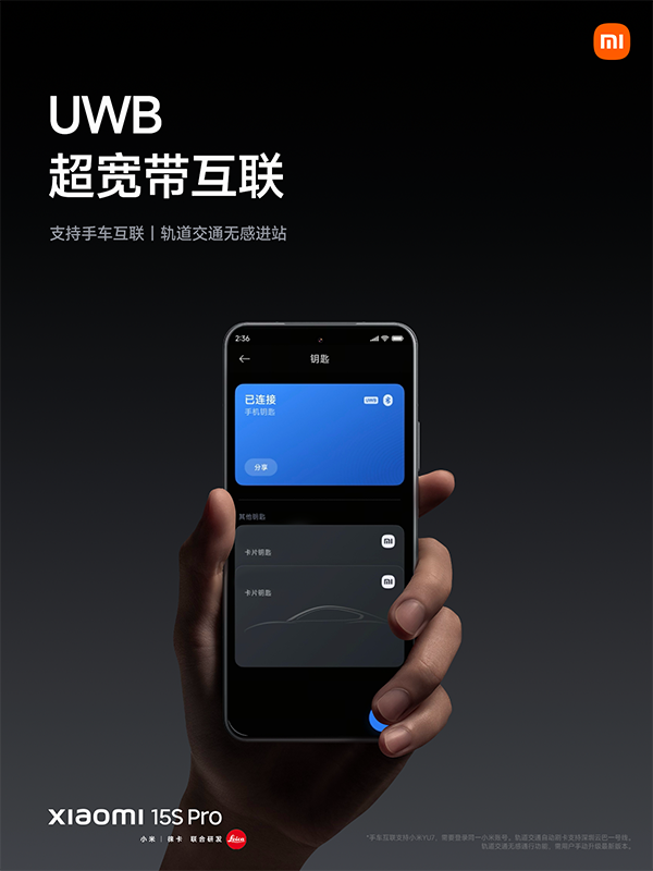 支持,小米15S Pro支持UWB超寬帶互聯(lián)技術(shù),空間感知能力大幅提升,精準(zhǔn)測(cè)量設(shè)備間的距離,實(shí)現(xiàn)軌道交通閘機(jī)自動(dòng)感應(yīng),絲滑無(wú)感支付,它還是更聰明的車鑰匙,讓出行體驗(yàn)更便捷。