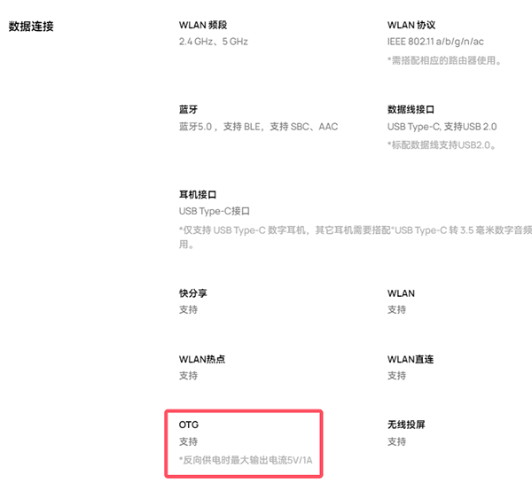 也就是說(shuō),Hi暢享80 Pro除了支持40W有線(xiàn)充電,另外還支持OTG反向充電,也就是有線(xiàn)反向充電,反向供電時(shí)最大輸出電流5V/1A。