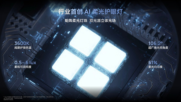這盞由四顆矩陣柔光燈珠構(gòu)成的護(hù)眼燈,能提供106.2°超廣角且均勻度極高的柔和補(bǔ)光,如同為用戶單獨開啟了一盞私人的護(hù)眼小夜燈。